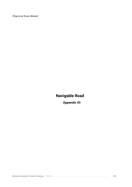 Physical Data Model Navigable Road Appendix 43 National Geospatial Features Catalogue | V 1.0 . . . . . . . . .. . . . . . . . . . . . . . . . . . . . . . . . . . . . . . . . . . . . . . . . . . . . . . . . . . .. 459